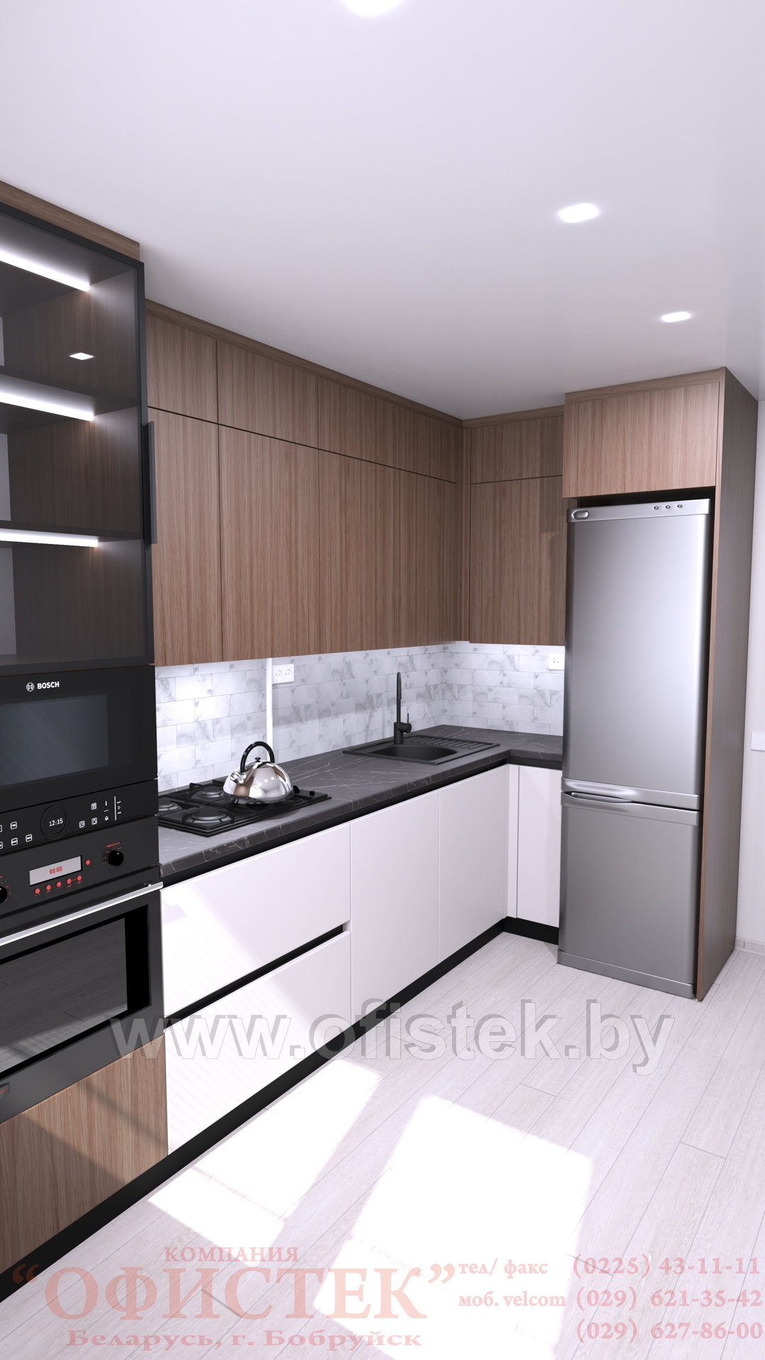 Корпуса: низ ЛДСП «Белый альпийский»; верх ЛДСП «Дуб тонсберг коричневый»;